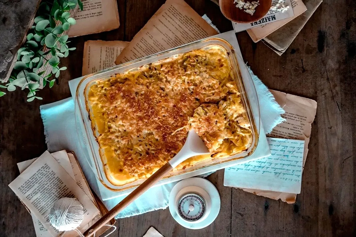 - Cubra tudo com o molho béchamel e tempere com noz-moscada.