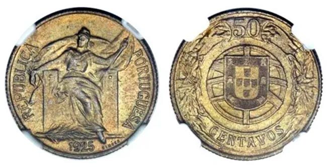 1. Moeda 50 centavos de 1925 (bronze-alumínio): €1.500 – €7.000