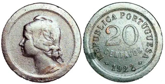 2. Moeda 20 centavos de 1922 (mm): €1.500 – €3.500