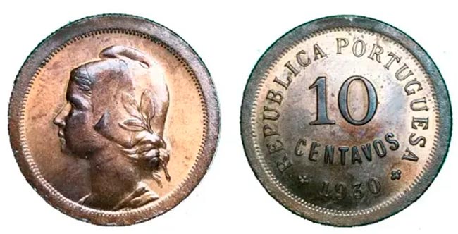 9. Moeda 10 centavos de 1930 (bronze): €110 – €510