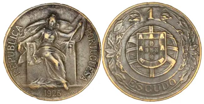 12. Moeda 1 escudo de 1926 (bronze – alumínio): €100 – €400