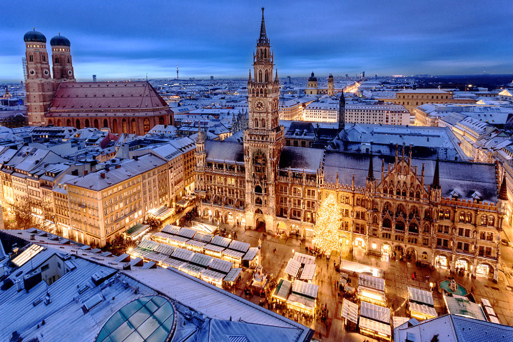 Marienplatz é uma praça cheia de vida, no coração de Munique. É comum ver grupos turísticos, artistas de rua e eventos diversos. Durante o Natal, a praça transforma-se num mercado natalício encantador, com barraquinhas de comida e artesanato.