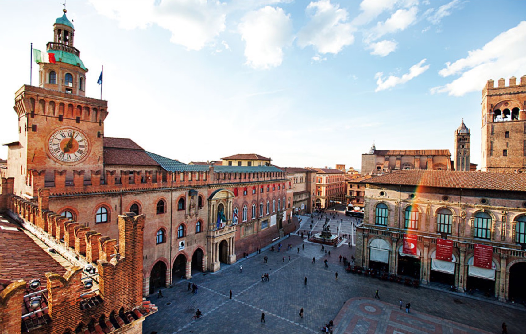 A Piazza Maggiore é a praça central de Bolonha e um ponto de encontro histórico. Rodeada por edifícios importantes como o Palazzo d’Accursio, o Palazzo del Podesta e a Basilica di San Petronio, a praça é um lugar ideal para admirar a arquitetura e desfrutar de uma refeição italiana nos restaurantes locais. A Piazza del Nettuno, com a famosa Fonte de Neptuno, fica nas proximidades.
