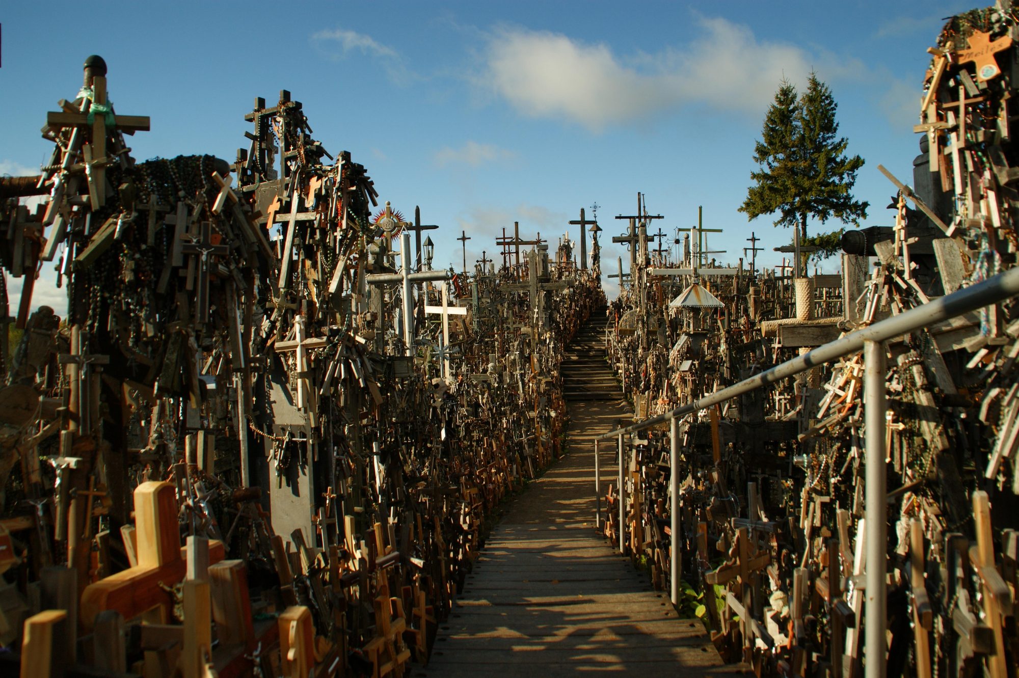 Este local de peregrinação católico, único em todo o mundo, teve origem nos rituais de pesar das famílias lituanas durante a guerra de separação da Rússia. Hoje, este sítio conta com mais de 100 mil cruzes, que lhe dão um aspeto misterioso.