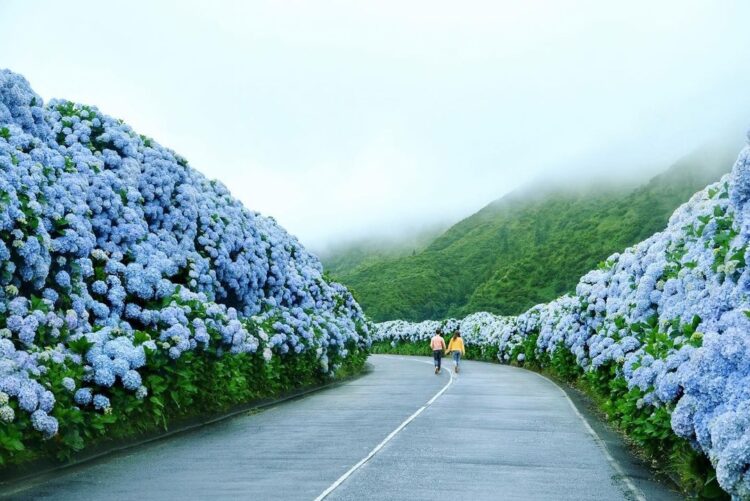 É uma das imagens de marca do arquipélago dos Açores. As hortênsias são comuns em quase todas as ilhas e, em muitos dos seus caminhos e estradas, transformam-se num espetáculo digno de ser apreciado. São utilizadas pelos açorianos como sebes vivas para delimitar os seus terrenos.