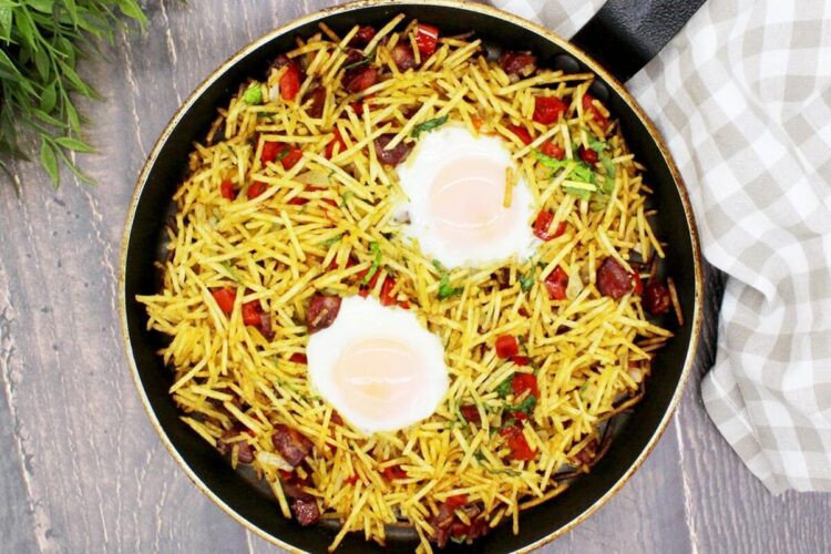 Os ovos rotos com batata palha são um prato simples, mas incrivelmente delicioso, que combina ovos estrelados com batatas fritas fininhas, criando uma mistura de texturas e sabores irresistível. A sua preparação é rápida e não requer muitos ingredientes, o que a torna ideal para aqueles momentos em que queremos algo saboroso, mas sem complicações.