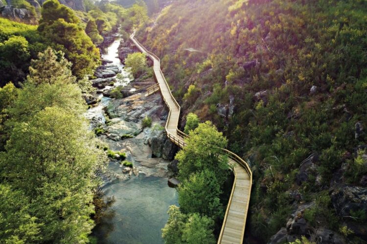 Estes novos passadiços seguem sempre pela margem direita do rio e revelam um lado mais íntimo do Vez. Aqui, o percurso de madeira serpenteia entre árvores frondosas, blocos de granito e poços de água translúcida que convidam a mergulhos nos dias mais quentes.