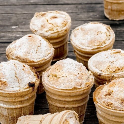 - Depois de prontos, retirar do forno, passar uma faca ao redor de cada pastel de forma a garantir que desenforma bem.