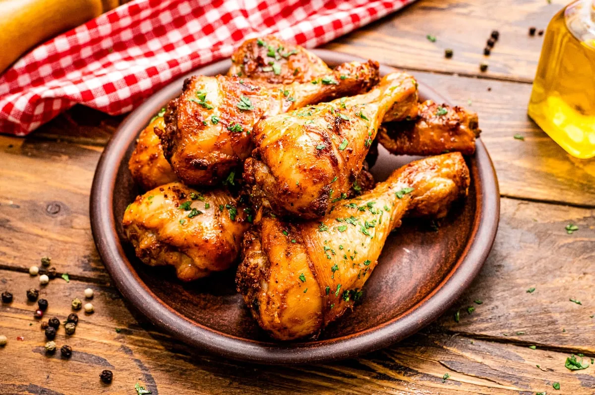- Sirva as pernas de frango no forno com limão acompanhadas do molho e de outros pratos da sua preferência, como batatas fritas, arroz ou uma salada.
