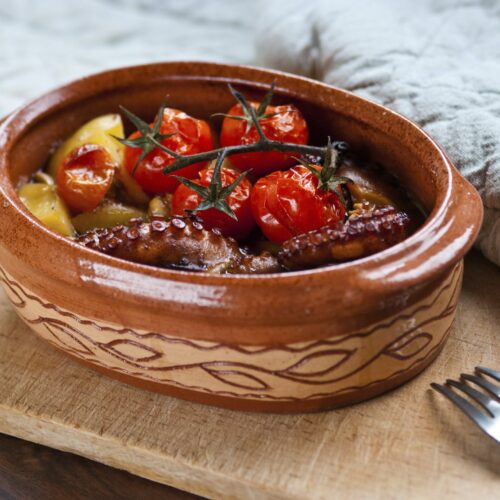 - Pode acompanhar o seu polvo assado de muitas formas mas fica sempre muito bem com batatas a murro. No fim, antes de servir, regue tudo muito bem com uma mistura de azeite virgem e alho picado.