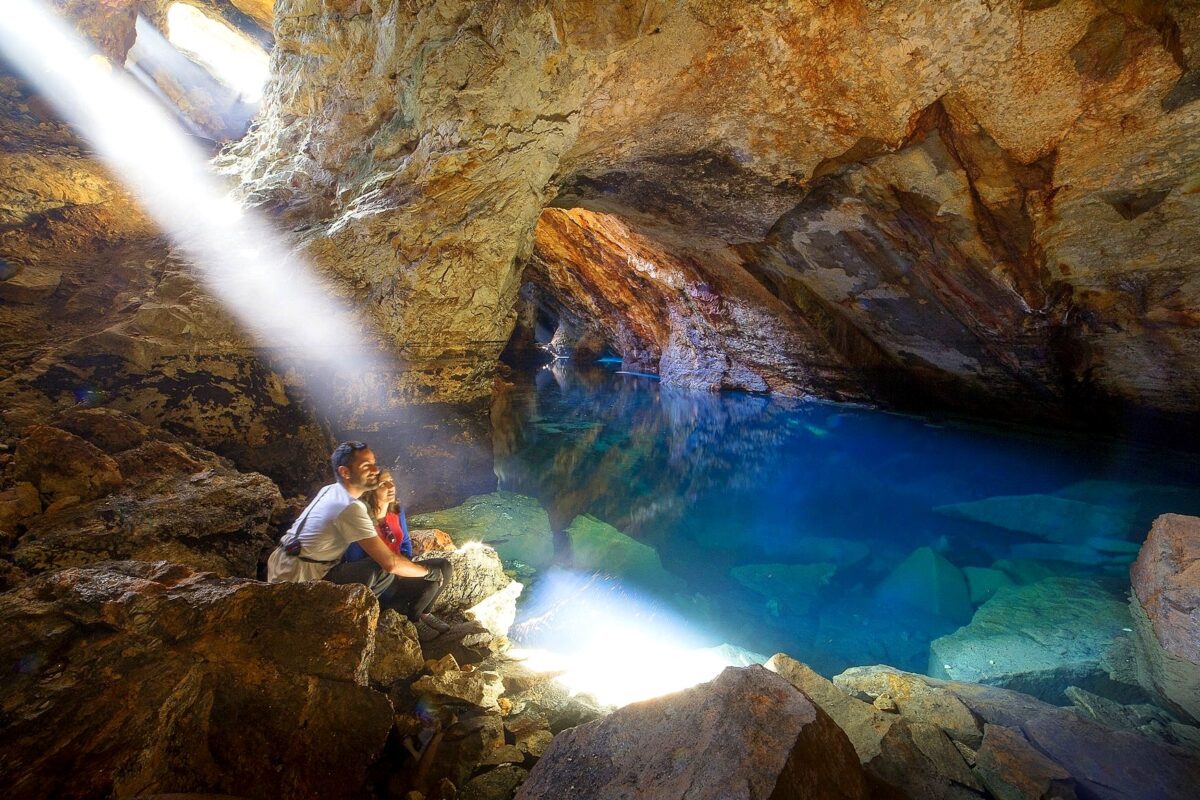 Existem várias lagoas, mas a maior delas todas é também a mais bonita, especialmente durante a hora do almoço, quando a luz natural entra na gruta e reflete na água, tornando a sua cor ainda mais intensa e brilhante. Um ambiente verdadeiramente mágico.
