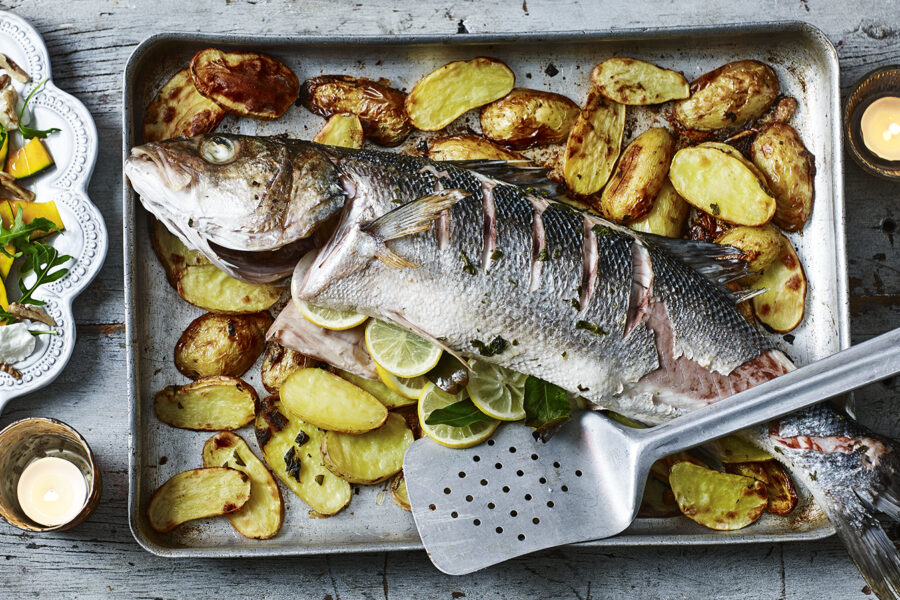 - Junte algumas batatas ao seu tabuleiro para que estas assem ao mesmo tempo que o robalo e assim ter uma refeição ainda mais completa.