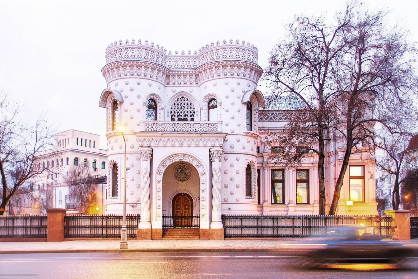 Construído entre 1895 e 1899 pelo arquiteto Víctor Mazyrin para o milionário Arsénio Morozov, o edifício combina elementos da Arte Nova e do Ecletismo, integrando ainda referências ao estilo Manuelino e ao Neomourisco. Deste conjunto de influências resultou uma obra invulgar, que não passou despercebida ao público moscovita da época.