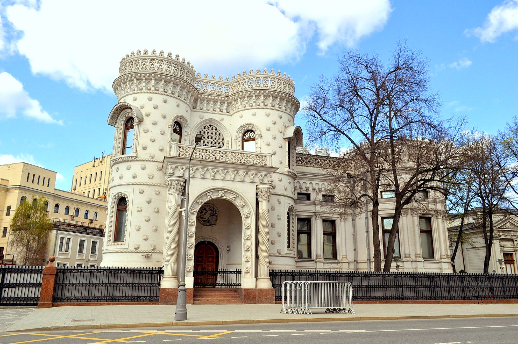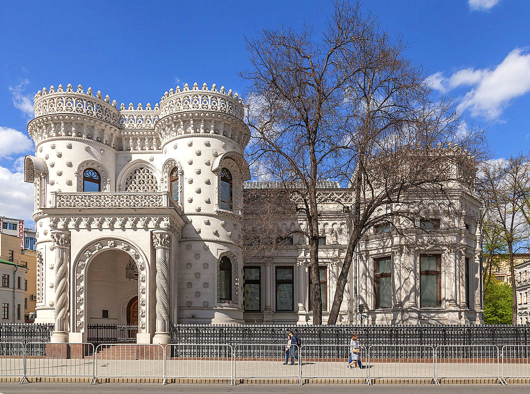 Construído entre 1895 e 1899 pelo arquiteto Víctor Mazyrin para o milionário Arsénio Morozov, o edifício combina elementos da Arte Nova e do Ecletismo, integrando ainda referências ao estilo Manuelino e ao Neomourisco. Deste conjunto de influências resultou uma obra invulgar, que não passou despercebida ao público moscovita da época.