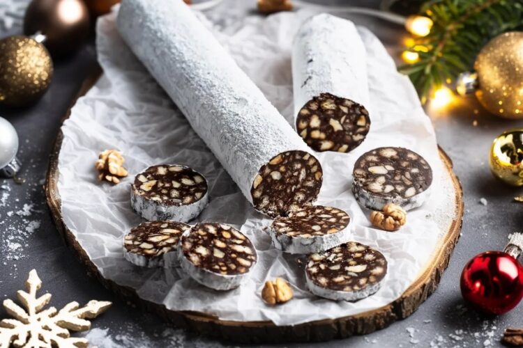 O salame de chocolate é uma daquelas sobremesas simples e clássicas que não pode faltar na mesa de Natal. Feito com ingredientes básicos que muitas vezes já temos em casa, é perfeito para juntar a família na cozinha e criar momentos de alegria e partilha.