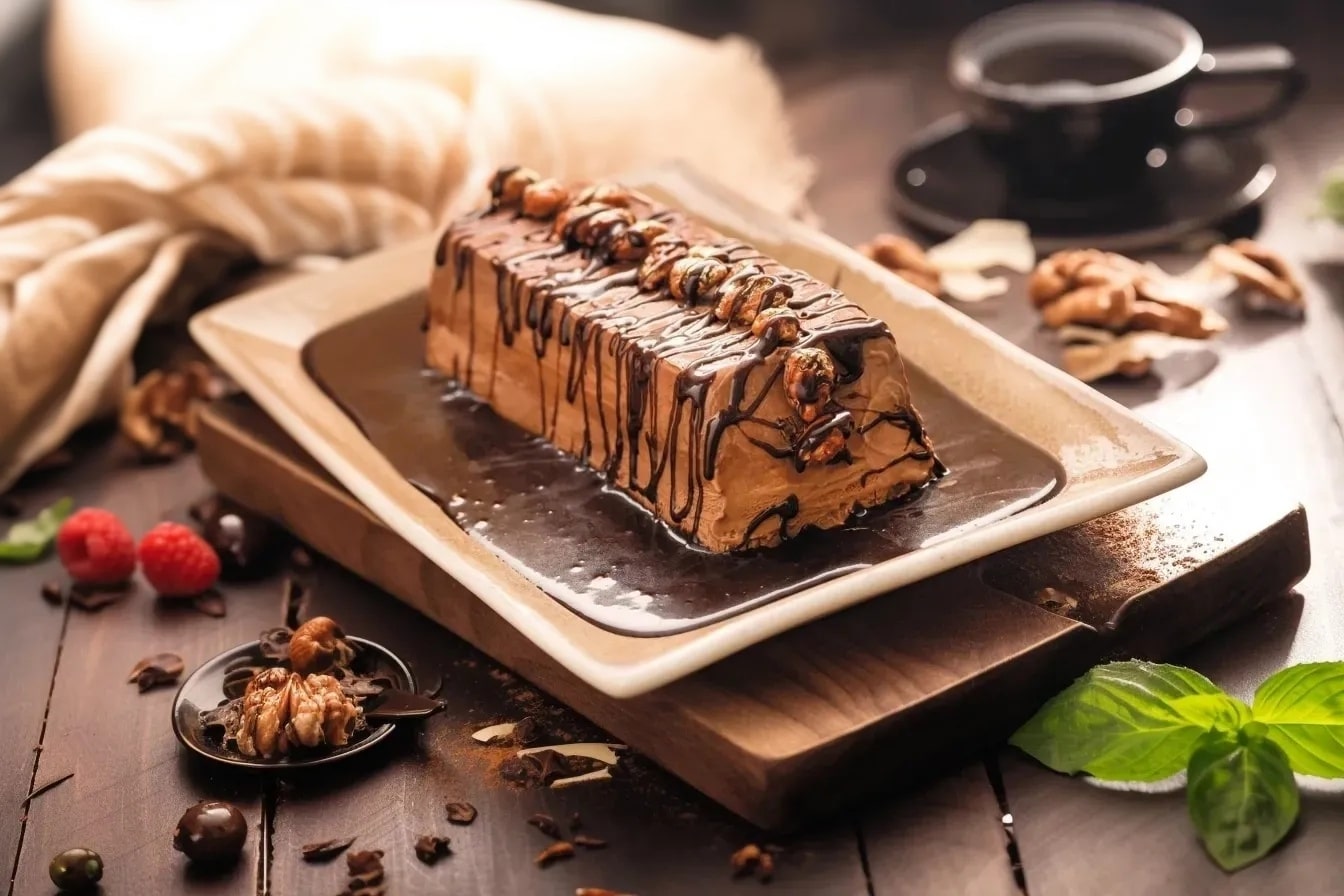 Com uma apresentação em camadas, este semifrio de chocolate e café pode ser servido diretamente em taças individuais ou numa forma. Para um toque final, pode decorá-lo com raspas de chocolate ou grãos de café, que darão ainda mais personalidade e charme à sobremesa. Reúna os ingredientes e prepare-se para surpreender os seus convidados com esta delícia!