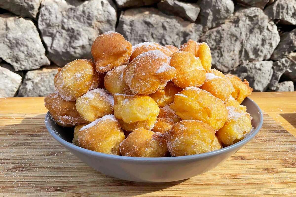 - Aqueça o óleo numa frigideira funda ou num tacho e, quando estiver bem quente, frite colheradas de massa, sem as deixar muito grandes, até ficarem douradas e cozidas por dentro.