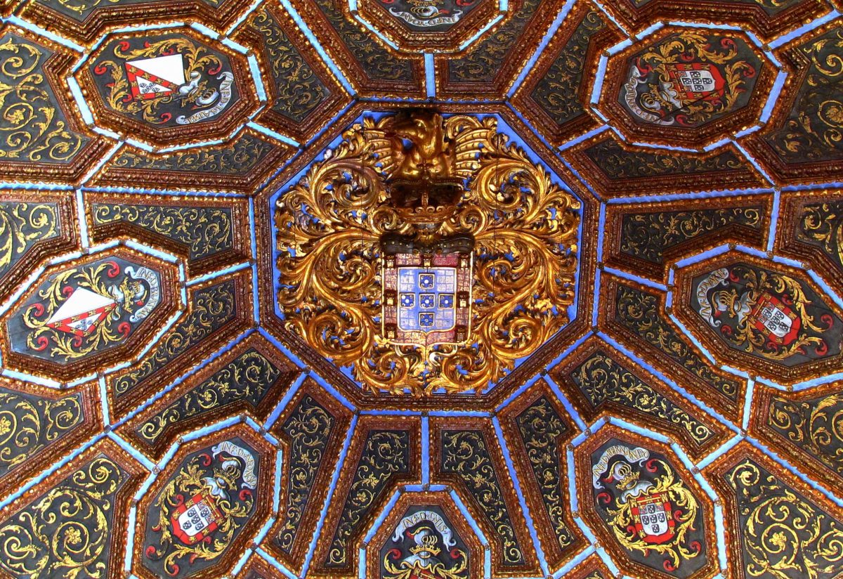 Esta sala é um dos melhores exemplos de afirmação do poder real. No centro do teto, estão as armas do Rei D. Manuel I, circundadas por seis brasões que representam a sua descendência masculina, e dois brasões em lisonja que representam a sua descendência feminina.