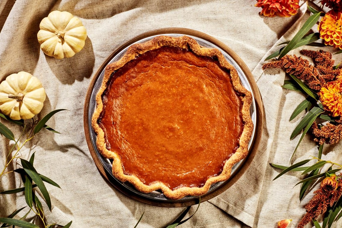 - Para o recheio, numa tigela grande, misture o puré de abóbora, o açúcar mascavado e as natas até obter uma mistura homogénea.
