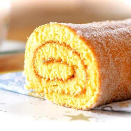 - Retire o papel vegetal e enrole a massa com a ajuda do pano. Deixe arrefecer antes de servir.