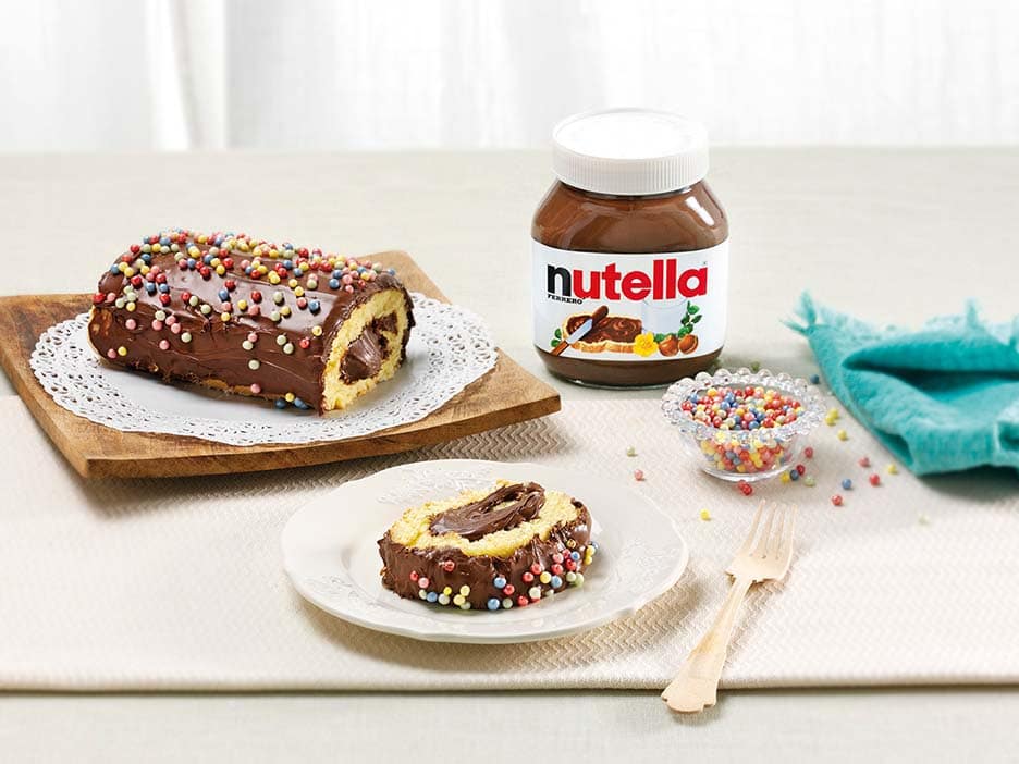 • Barre com Nutella e enrole a torta. Deixe arrefecer.