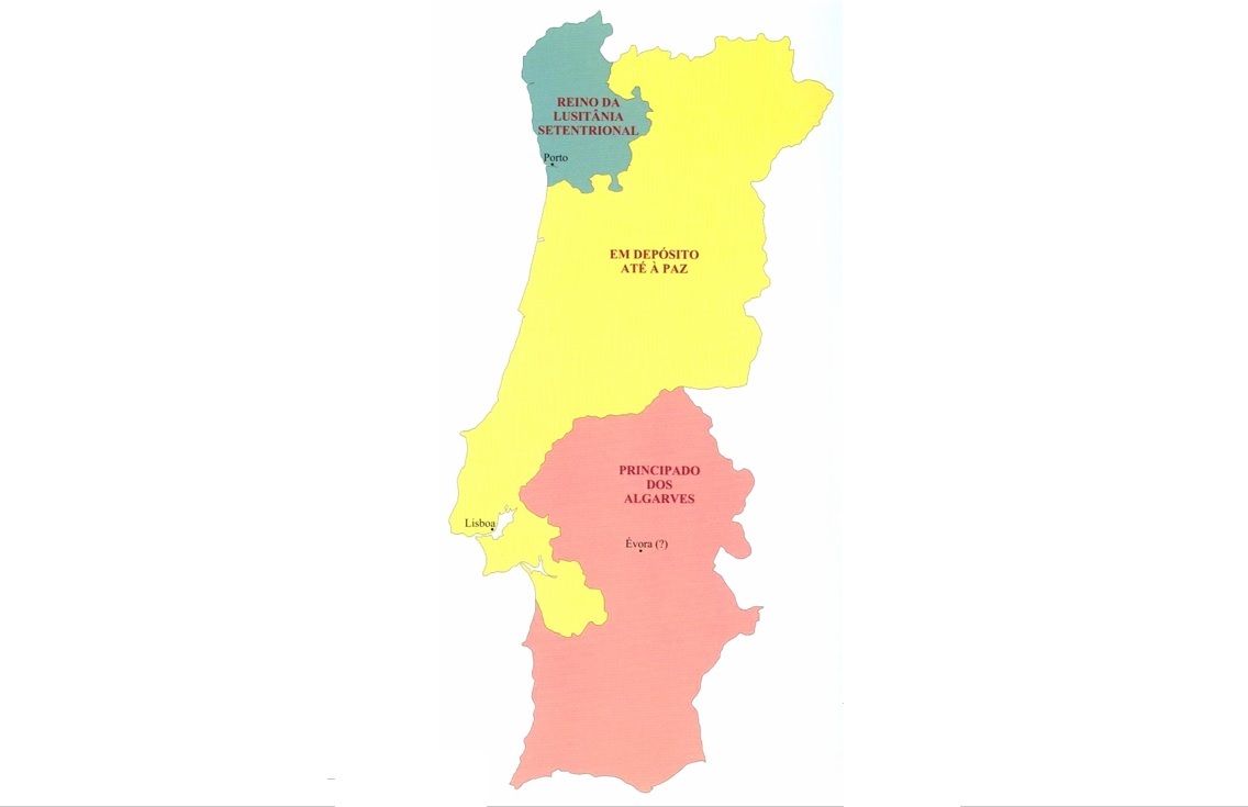 Portugal continental seria então dividido em três partes: o Reino da Lusitânia Setentrional (com 750.000 habitantes e 8.000 km2); o Principado dos Algarves (com 350.000 habitantes e 35.000km2); e uma terceira parcela com 46.000 km2 e 1.900.000 habitantes, cujo destino se decidirá posteriormente. Como era costume na época, os territórios seriam para reis estrangeiros.