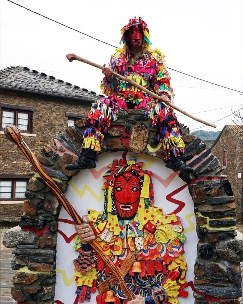 Atiram feno ao povo, chocalham as raparigas mais novas (e algumas mais velhas também), provocam os animais e espalham água das fontes, sempre acompanhados por um gaiteiro e por um bombo.